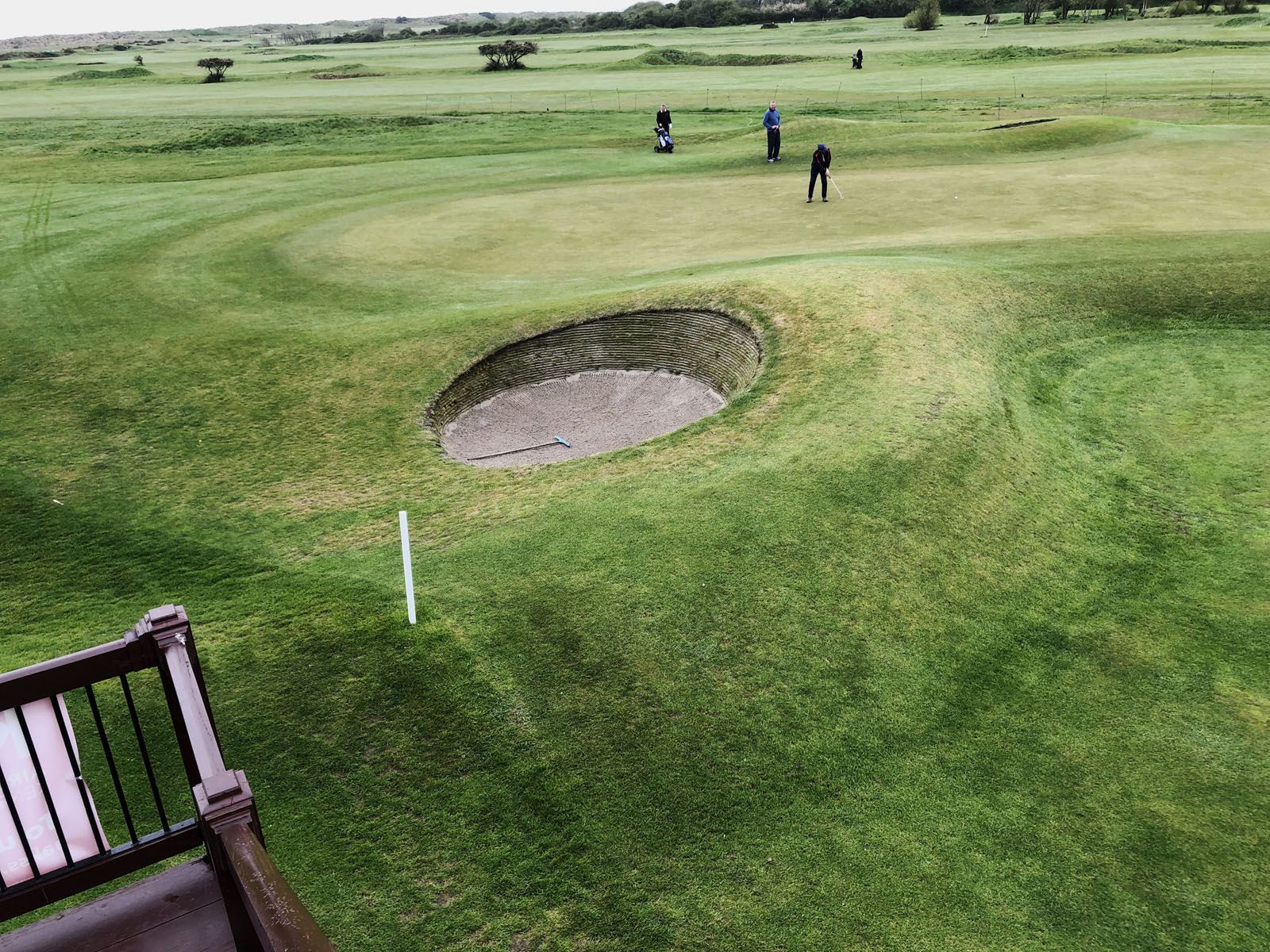 An der Küste lockt der Littlehampton GC, ein freundlicher alter Linkscourse („der einzige in West Sussex“) an der Mündung des Arun. Wir sind zu früh, die Bar ist noch geschlossen, aber die Freitagmorgen-Herrenrunde beteiligt uns gegen Informationen zum Woher und Wohin bereitwillig am extra für sie bereitgestellten Kaffee. Der Platz ist lang und flach mit obligatorischen Topfbunkern. Die vorderen Abschläge (noch ungegendert „Ladies Tee“) sind klein, offensichtlich später hinzugefügt und schenken ihren Nutzer:innen auf den ersten Neun gerade mal 70 Yards. Dafür entschädigen CR- und Slopewert. Man riecht das Meer und hört die Möwen. Um das Lokalkolorit abzurunden, frischt der Wind auf und es nieselt – gelungener Urlaubsstart.Reise. Verplant
